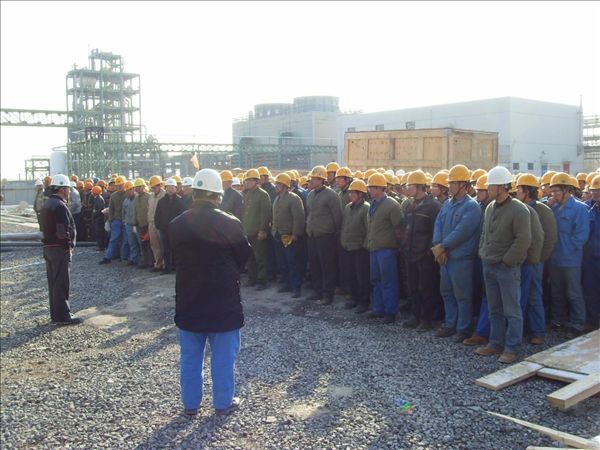 會(huì)上,分公司副經(jīng)理欒立超代表分公司對(duì)干好EO裝置的重要意義進(jìn)行了分析,并部署了質(zhì)量安全的控制、機(jī)械材料的供應(yīng)、施工技術(shù)服務(wù)等方面的工作。他號(hào)召施工人員要把項(xiàng)目的各項(xiàng)工作落到實(shí)處,做到措施落實(shí)到位、分工明確、責(zé)任到人;同時(shí)各個(gè)施工小組要認(rèn)真細(xì)化任務(wù),把任務(wù)分解到每一周、每一日,在全場(chǎng)形成你追我趕的大干局面。業(yè)主阿克蘇—諾貝爾乙烯胺(寧波)有限公司的現(xiàn)場(chǎng)項(xiàng)目經(jīng)理和管理公司福斯特惠勒國(guó)際工程咨詢(xún)(上海)有限公司的現(xiàn)場(chǎng)施工經(jīng)理也在會(huì)上給施工人員打氣鼓勵(lì)。
